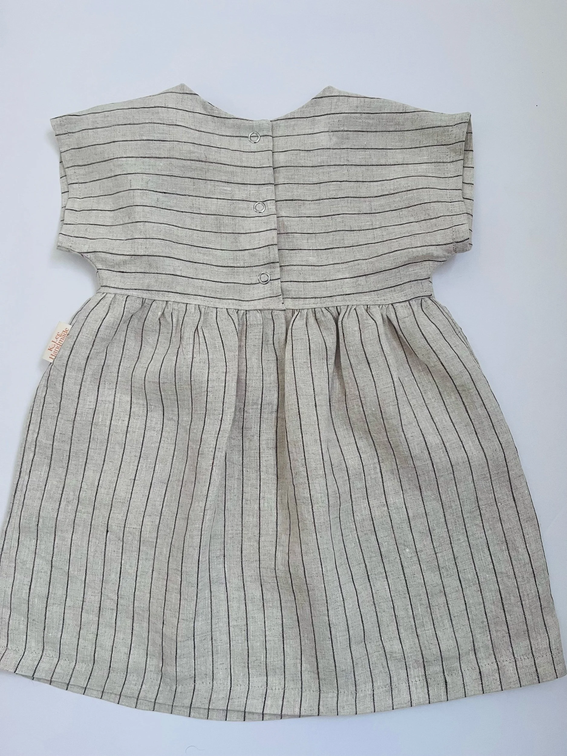 All linen, easy wear dress for the summer months. Generous fit with snaps at back bodice. This is such a classic style that can be thrown on without any trouble and protects those little shoulders from the sun.